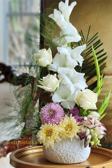 We are a mother-daughter team who are passionate about our craft. We work tirelessly to create beautiful arrangements that exceed our customers' expectations. Every piece is unique, and created with love and passion. We are committed to quality. Our flowers come directly from the growers, are fresh and last for a long time.
